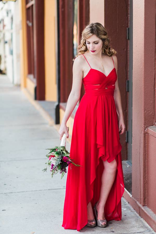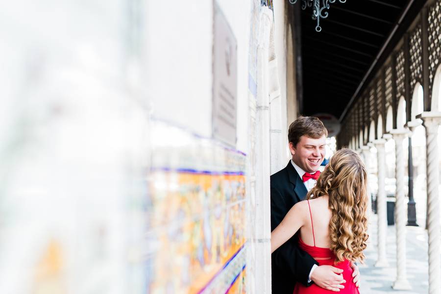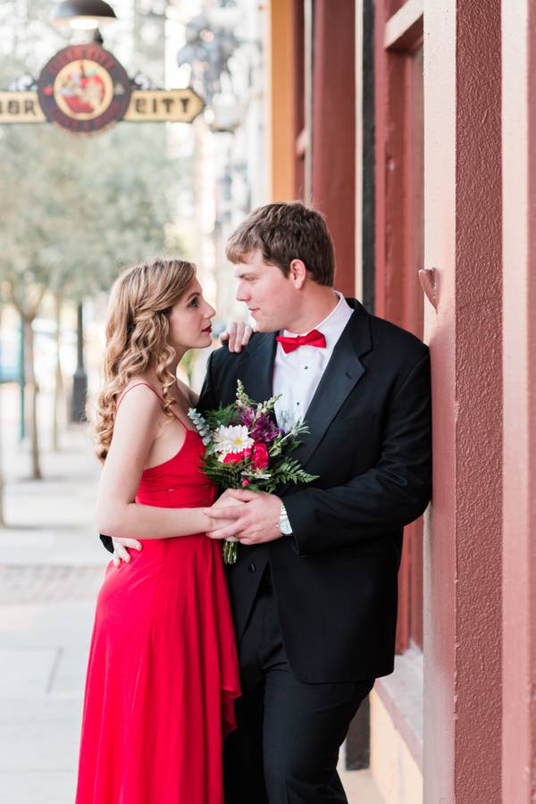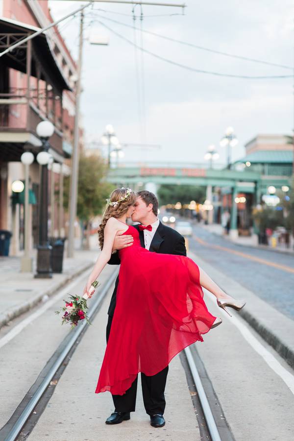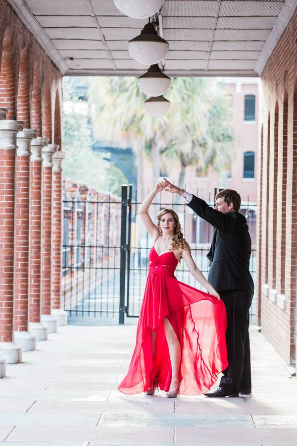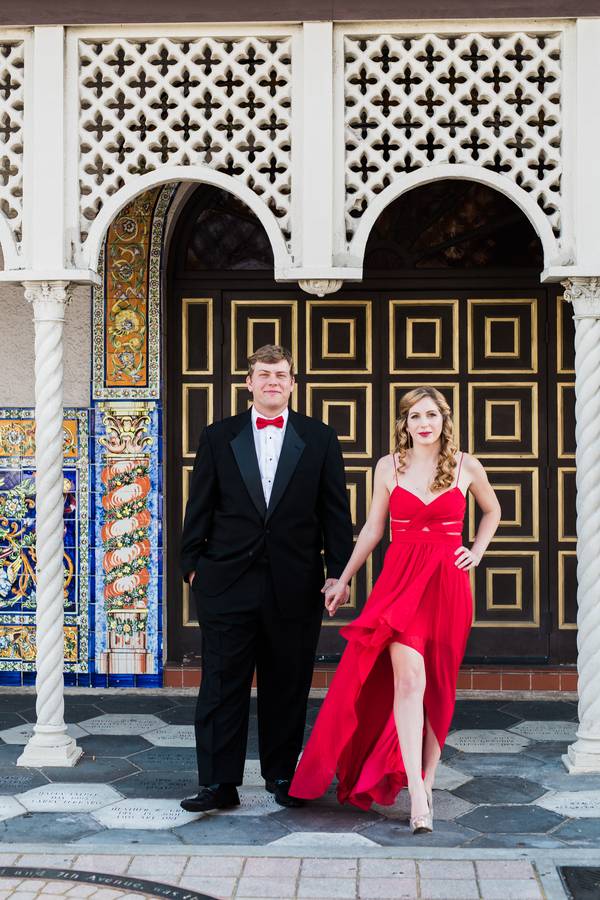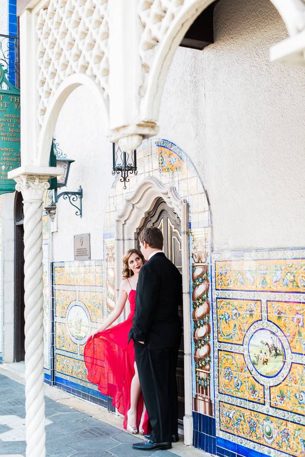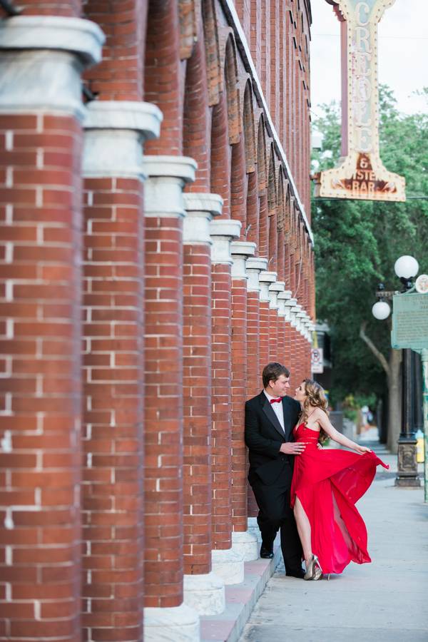I was born in Cuba and my entire family is Cuban. Like I mentioned before we are both old souls. We wanted to pay a tribute to Cuba so we went to Ybor for the scenery. We wanted to keep our guests guessing about the wedding theme so we went with opposite colors. Bright red and dark black bot the engagement shoot while the wedding colors are muted pinks, ivory and gold.